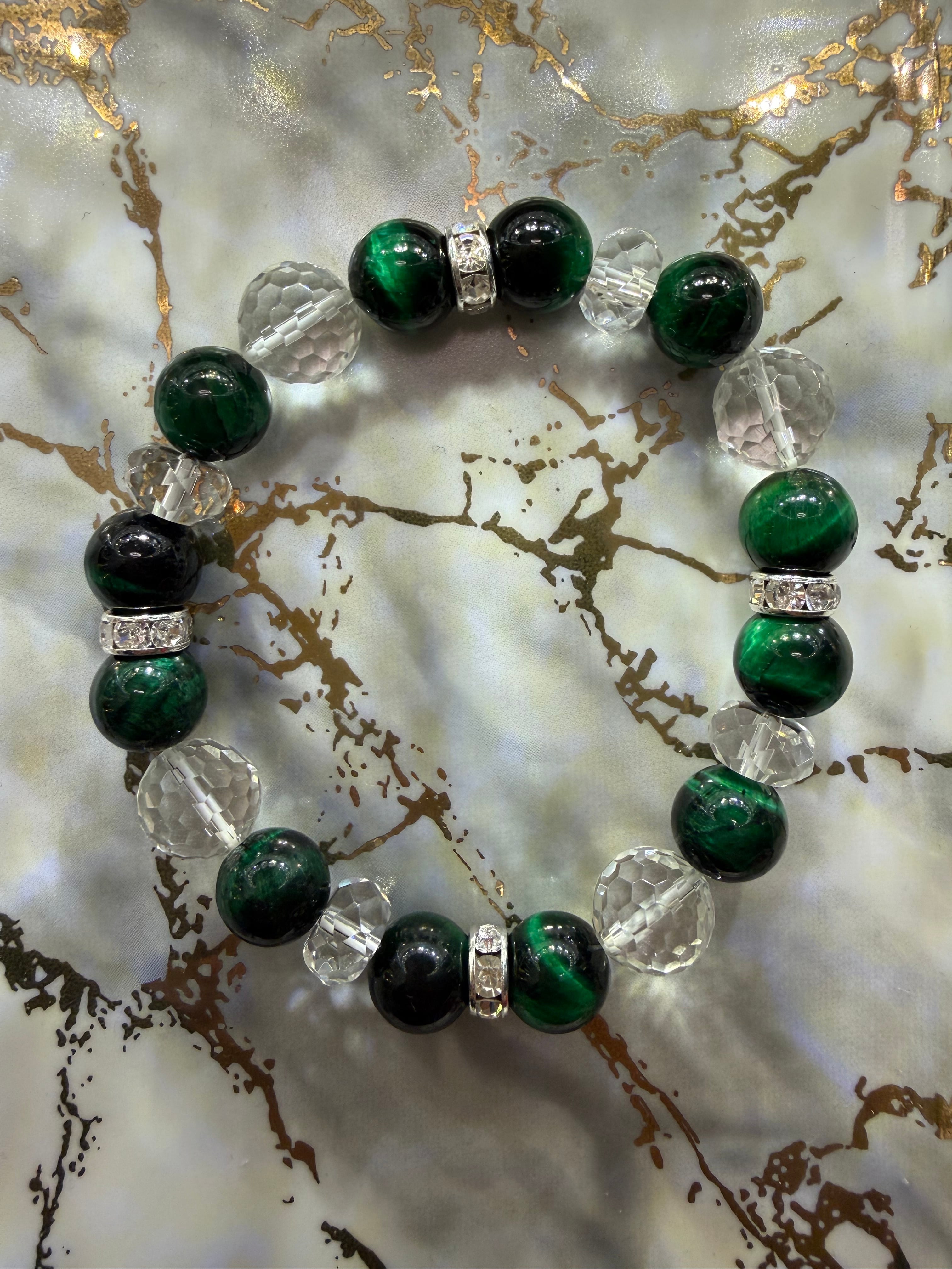 このブレスレットは、私自身が心惹かれるデザインで、日常のコーディネートにさりげない個性をプラスします。グリーンタイガーアイのエネルギーは、自己認識を高め、精神を落ち着かせる助けとなり、ストレスを軽減する力を持っています。