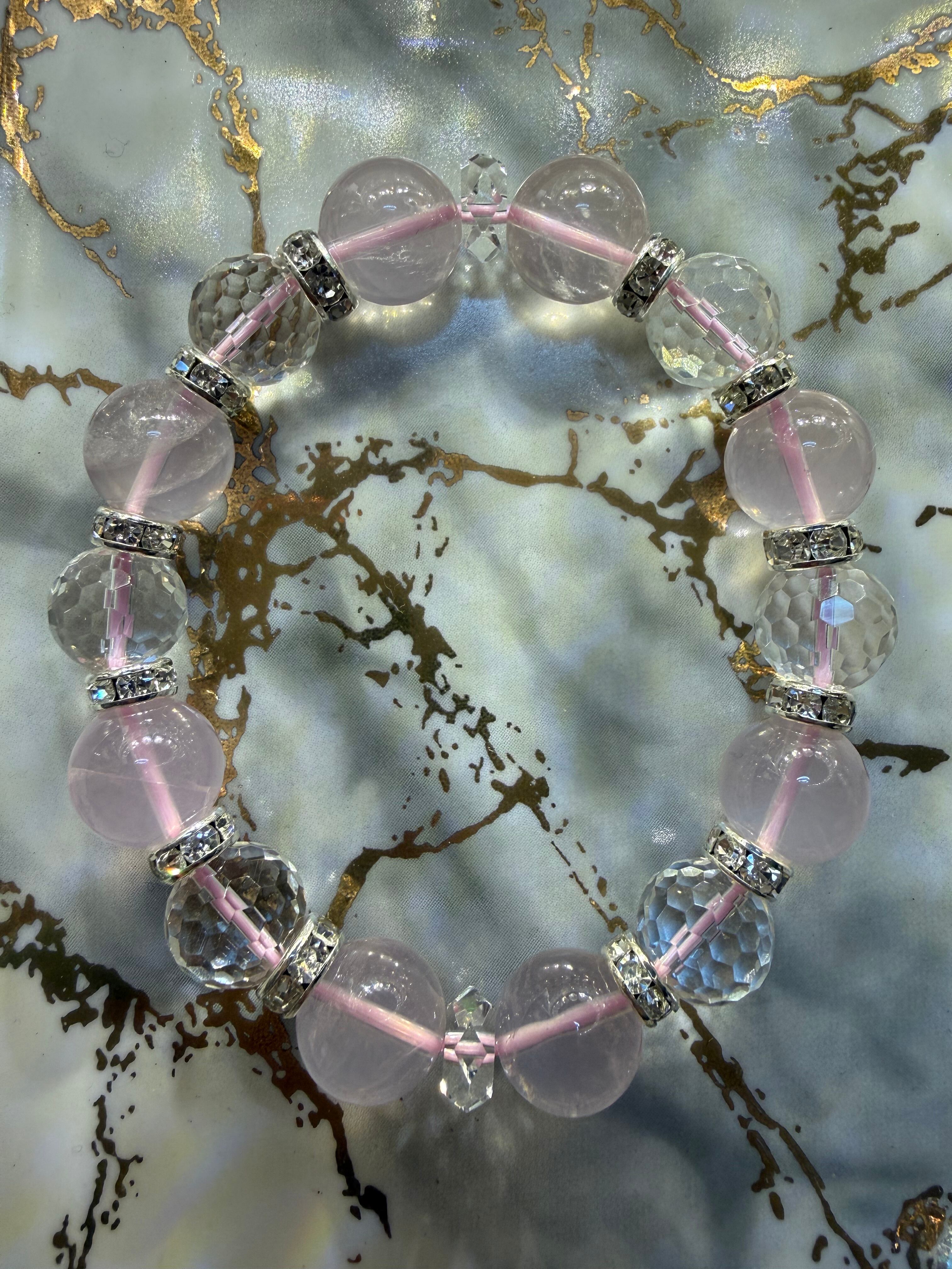 ♦️ 1点もの♦️桜とピンク祭り♦️天然石ローズクオーツ&水晶♦️パワーストーンブレスレット♦️