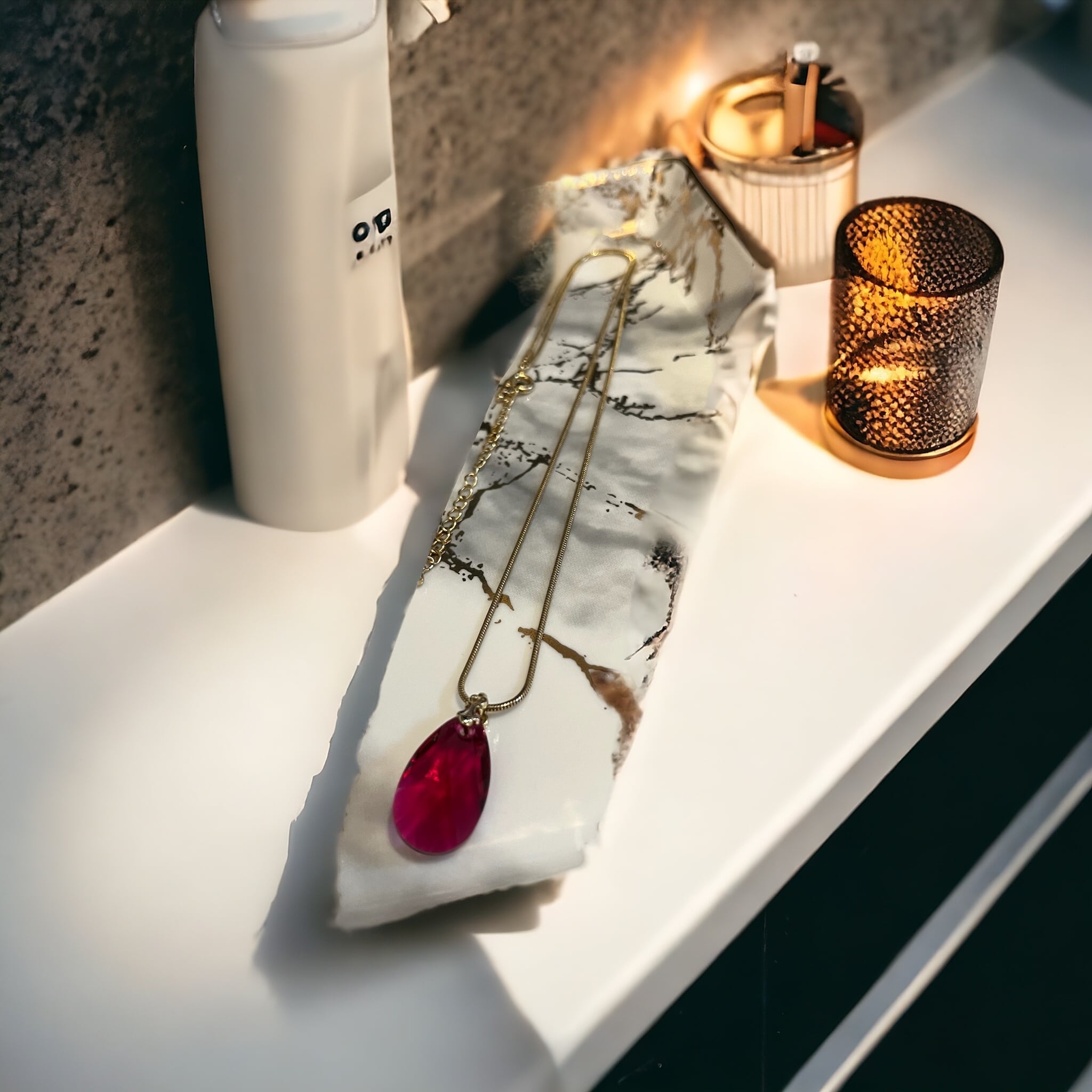 ¡Este exquisito collar presenta un impresionante diseño en forma de lágrima, elaborado con maestría para simbolizar significados profundos! Adornado con el radiante rubí, conocido por sus asociaciones con el amor y la pasión, aporta un brillo cautivador a tu atuendo. Perfecto para ocasiones especiales o para agregar un toque de glamour al uso cotidiano, ¡este collar también es un maravilloso regalo para un ser querido! ¡No te pierdas la oportunidad de realzar tu encanto con esta pieza de joyería especial!