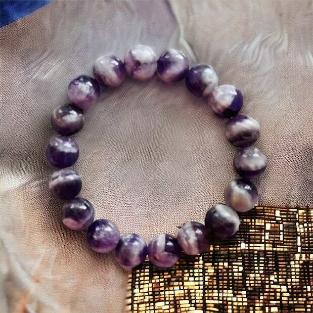 天然石アメジストを使用した、魅力的なパワーストーンブレスレットです。アメジストは、心を落ち着け、癒しをもたらすパワーがあるとされています。洗練されたデザインにより、どんなスタイルにも合わせやすく、日常使いに最適です。